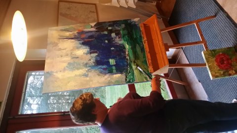 Vi maler hver torsdag eftermiddag, fra 15 til 18.00. på den nye Aabybro skole i formningslokale K 1042 på 1. sal
